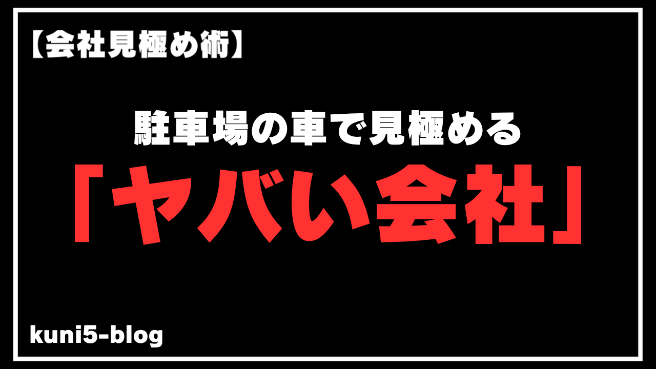 よいす! ども、kuni5でいす。 今回の記事は、 会社の駐車場を見極めて、 本当にいい会社なのか実体験エピソード~!! 会社に就職するときって、 どんな会社なのかとか本当にいい会社なのかとか 全く持 ...