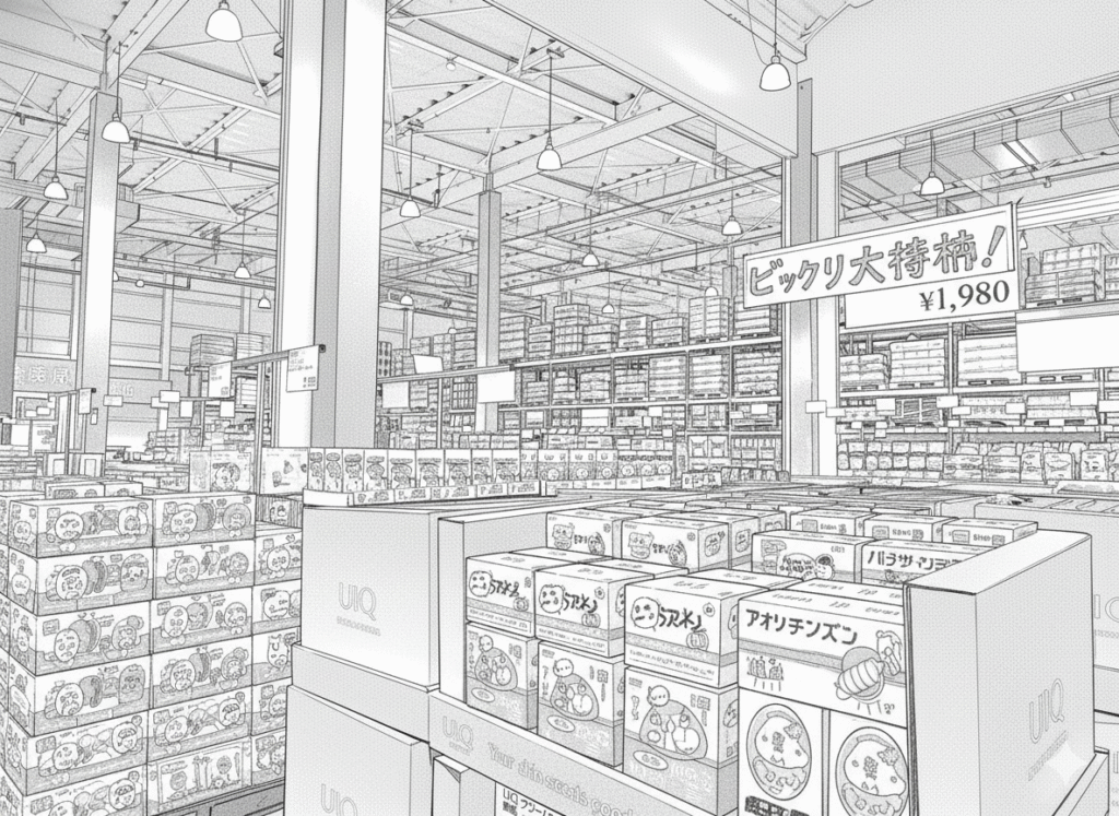 商品数と種類が多いから万引き対策は必須なのだろう。
