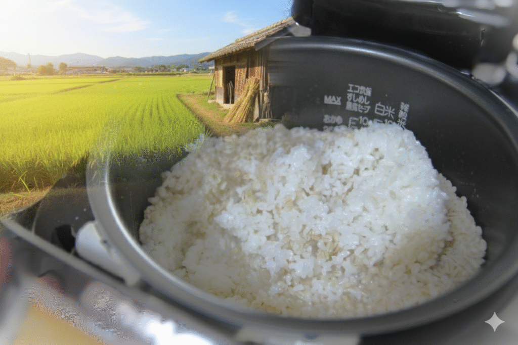 背景はAIを使用したけど、炊飯器の米はマジもんだ!!
