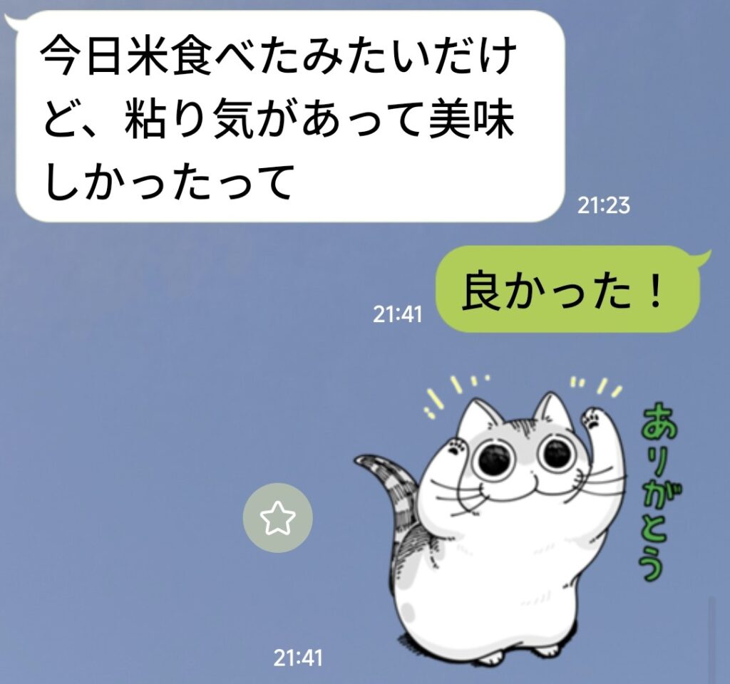 米を渡した後、友人からすぐに感想のメッセージが送られてきたぞ。