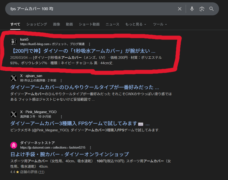 [ダイソー]1秒吸水アームカバー(メンズ、UV)