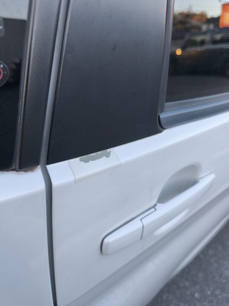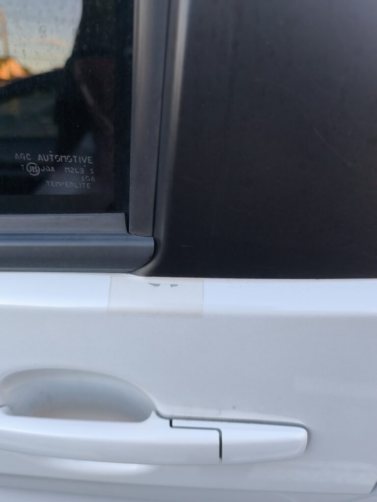 応急処置でビニールテープを塗装剥がれ部分に貼っている。