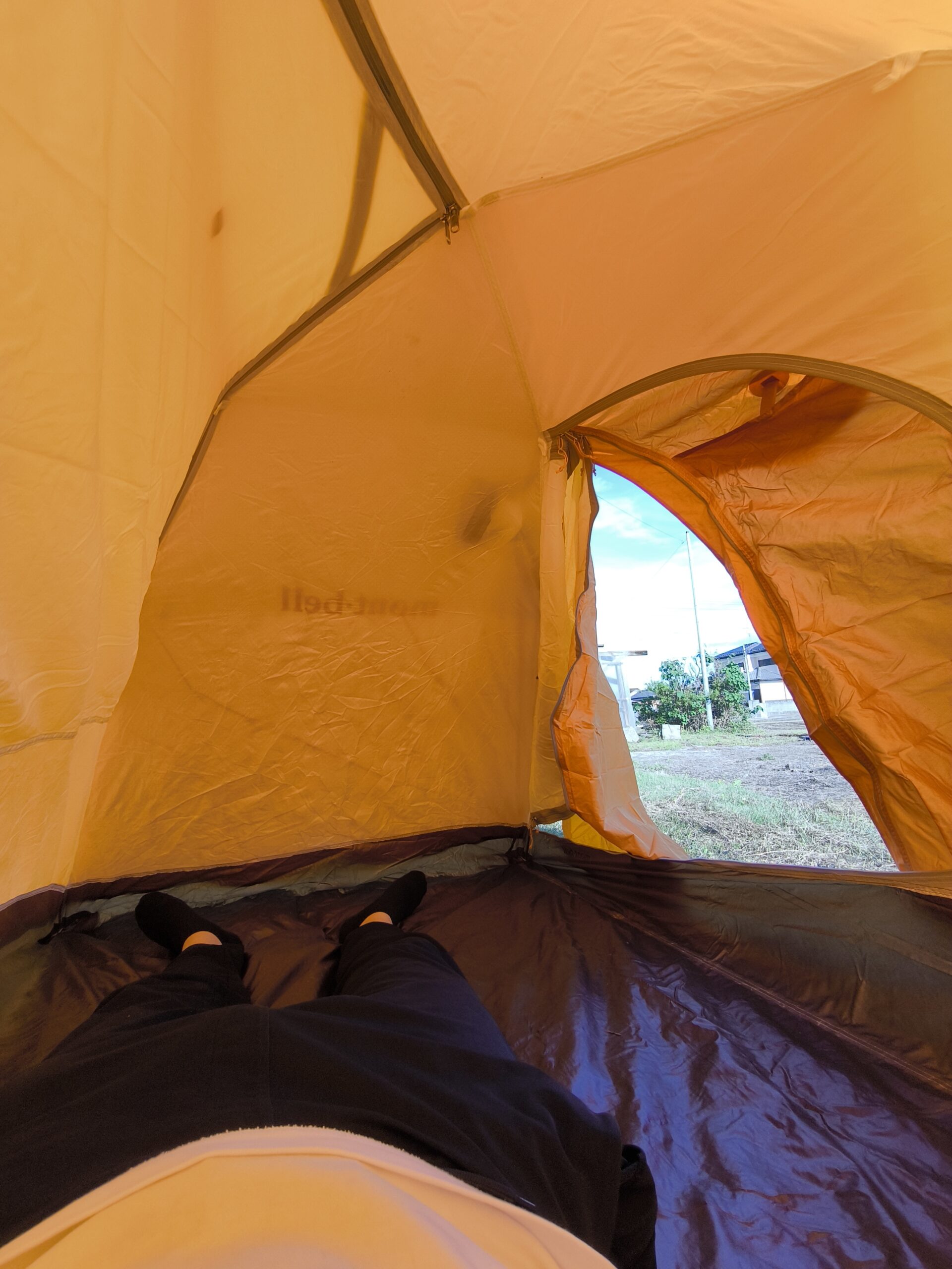 畳めばコンパクトになるこのテントは生地が薄いけど、