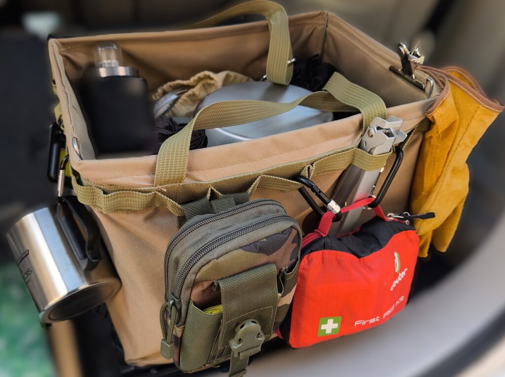 ライトを引っ掛けたり、緊急用のバンドエイドとか入ってる